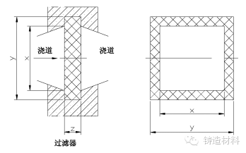 过滤面积:由于过滤器的阻流作用,再加上部分器孔逐渐被堵塞,要求过滤器面积要大于正常浇道截面,一般是正常浇道的2~4倍。