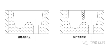浇口盆是单独制作成的承接金属液的容器,是一种特制的浇口杯。浇口盆有如下四种形式:普通式浇口盆、闸门式浇口盆、柱塞式浇口盆、过滤器式浇口盆。充满浇口盆的金属液可减缓液流冲击,消除水平涡流,熔渣杂质上浮,避免气体熔渣进入型腔。除普通浇口盆外,后几种浇口盆都具有良好的挡渣能力。如浇口盆容量略大于浇注金属液的量,浇口盆还可起定量作用;柱塞浇口盆对球墨铸铁件尤为适用。浇口盆容积大,消耗金属多,一般用于中、大型及重要铸件的浇注。