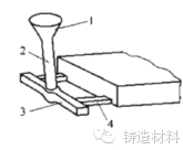 1—浇口杯 2—直浇道 3—横浇道 4—内浇道